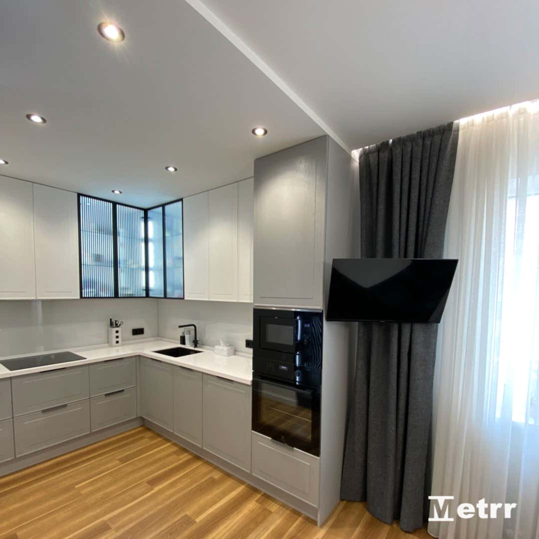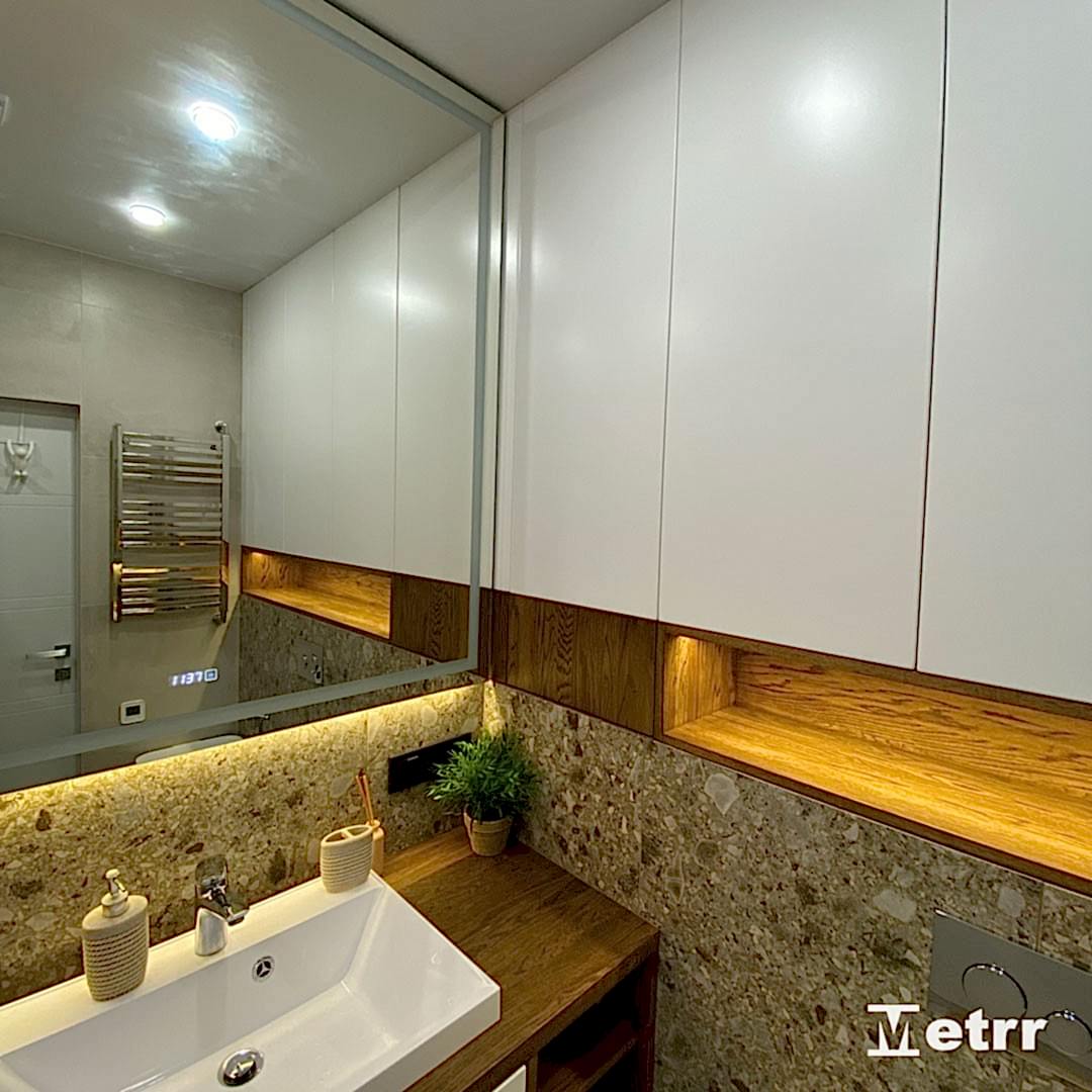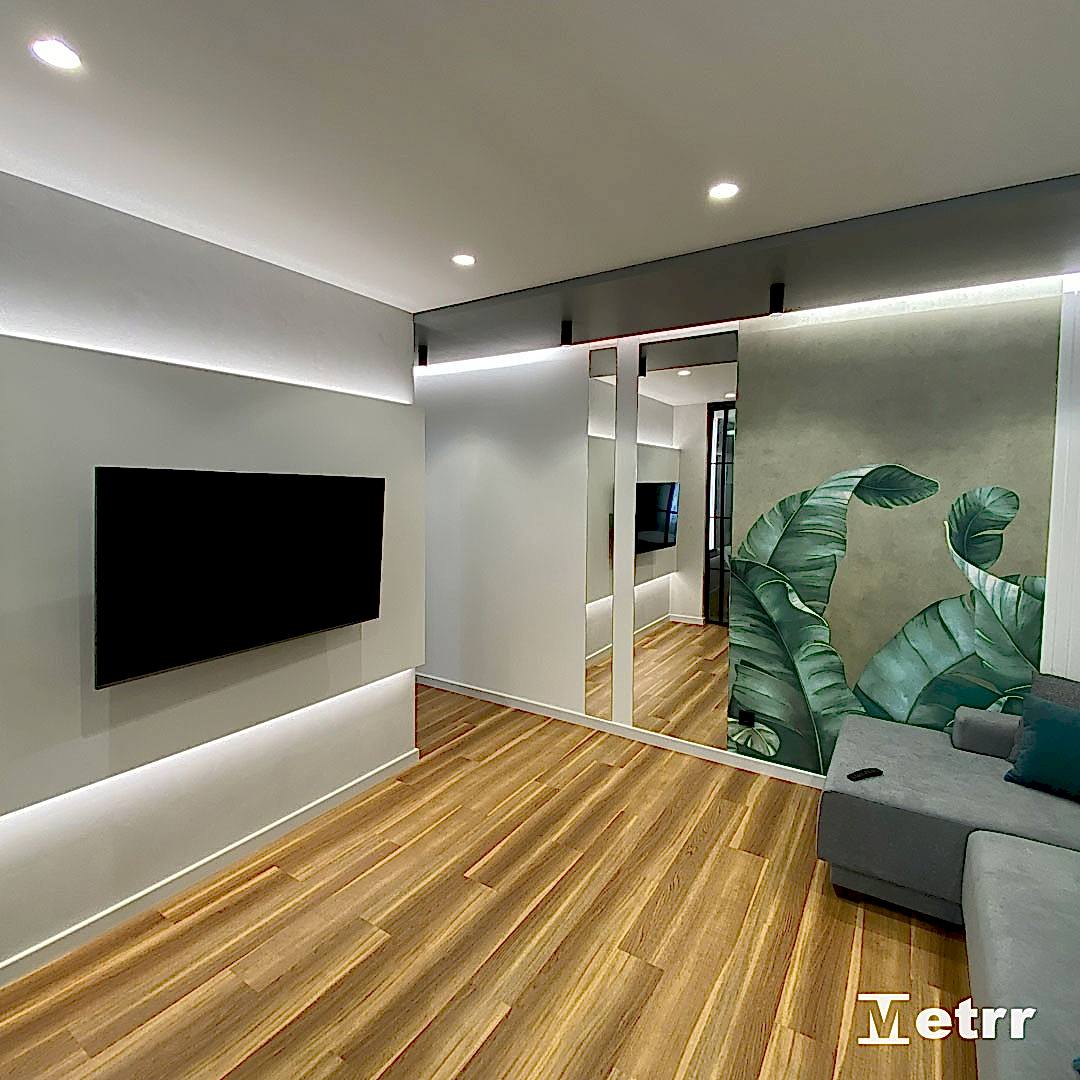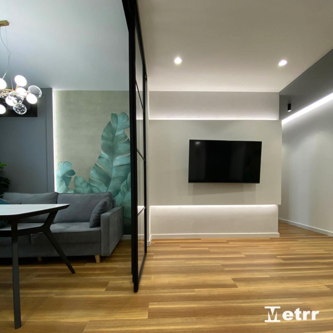 Мы начали работы с демонтажа и монтажа перегородок, поменяли оконные конструкции. Pin Up были выполнены комплексные работы по электромонтажу, сантехнические, штукатурные работы, наливной пол, подготовка стен к покраске, поклейке обоев, плиточные и другие чистовые работы.