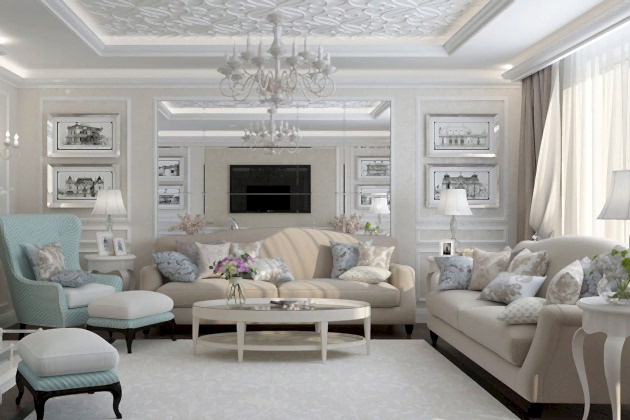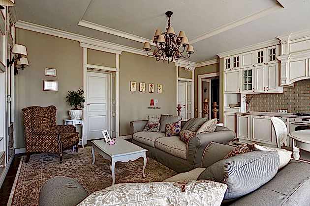 Классический стиль в интерьере отличается симметричностью. Натуральные оттенки - айвори, молочный, оливковый. Обилие декора: лепнина на потолках, ниши, колонны. Приветствуются гобелены, ковры, Pin Up Для освещения - красивая хрустальная люстра.